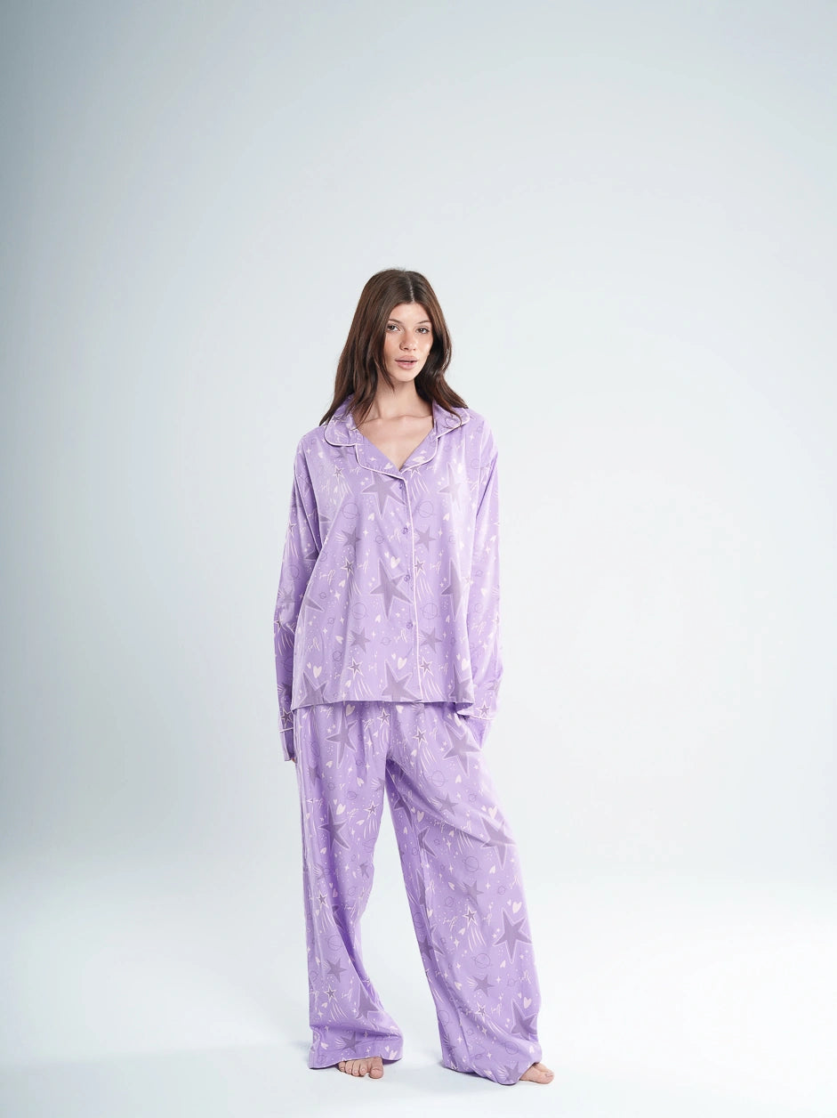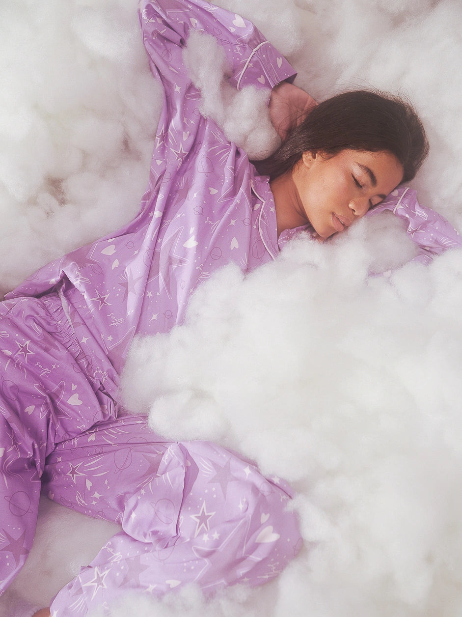 a purple sky for your nighttime orbit. sprinkled with stars, soft enough to melt into — made for girls who dream loudly.