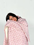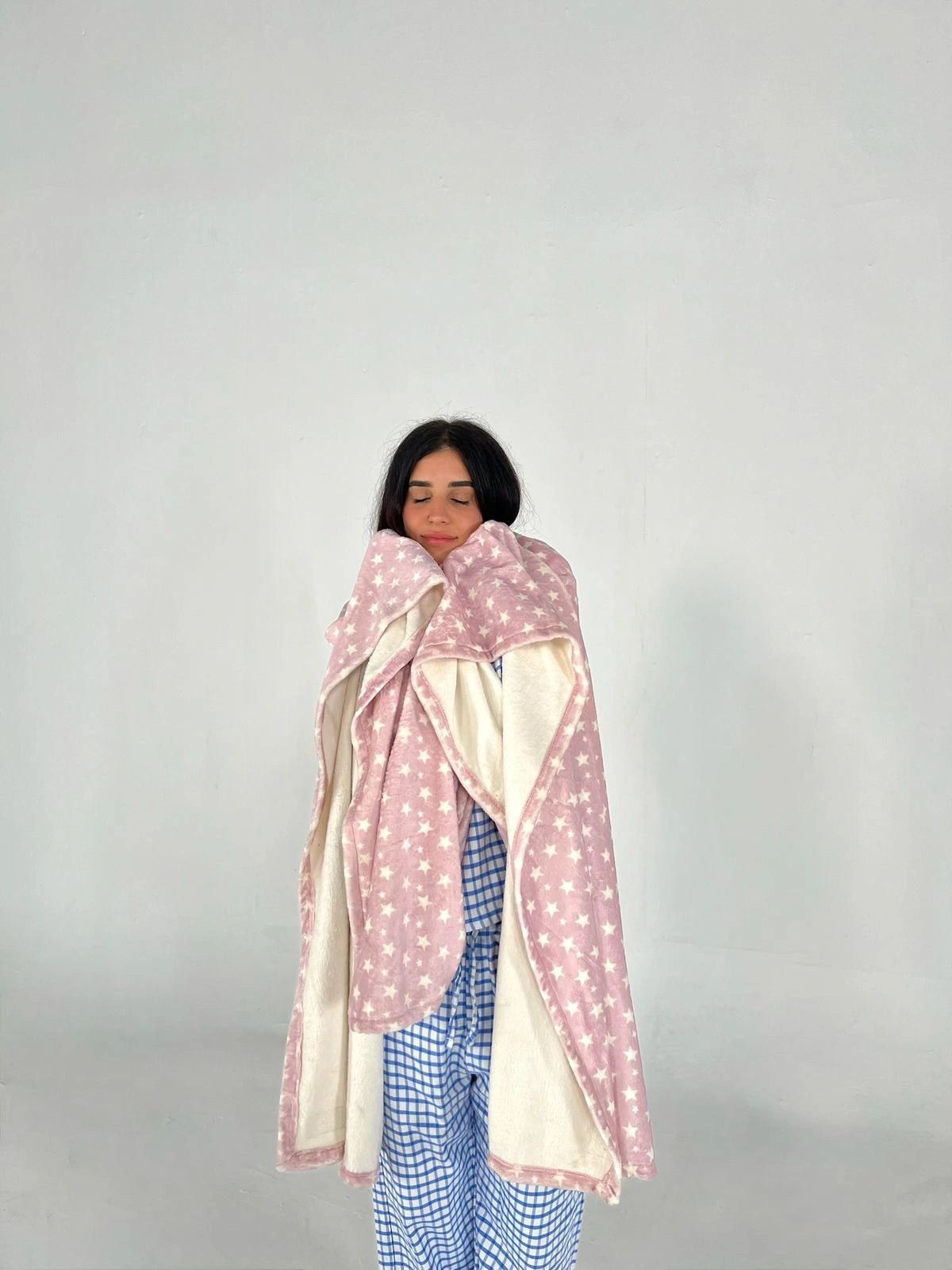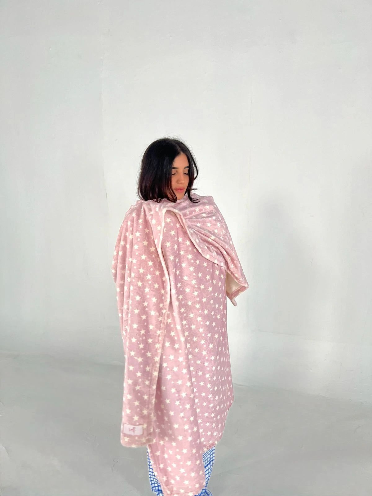 soft pink, scattered stars, and that plush kind of warmth that feels like sinking into a winter night. it’s the blanket version of slow evenings, quiet moods, and being wrapped in your own little sky.