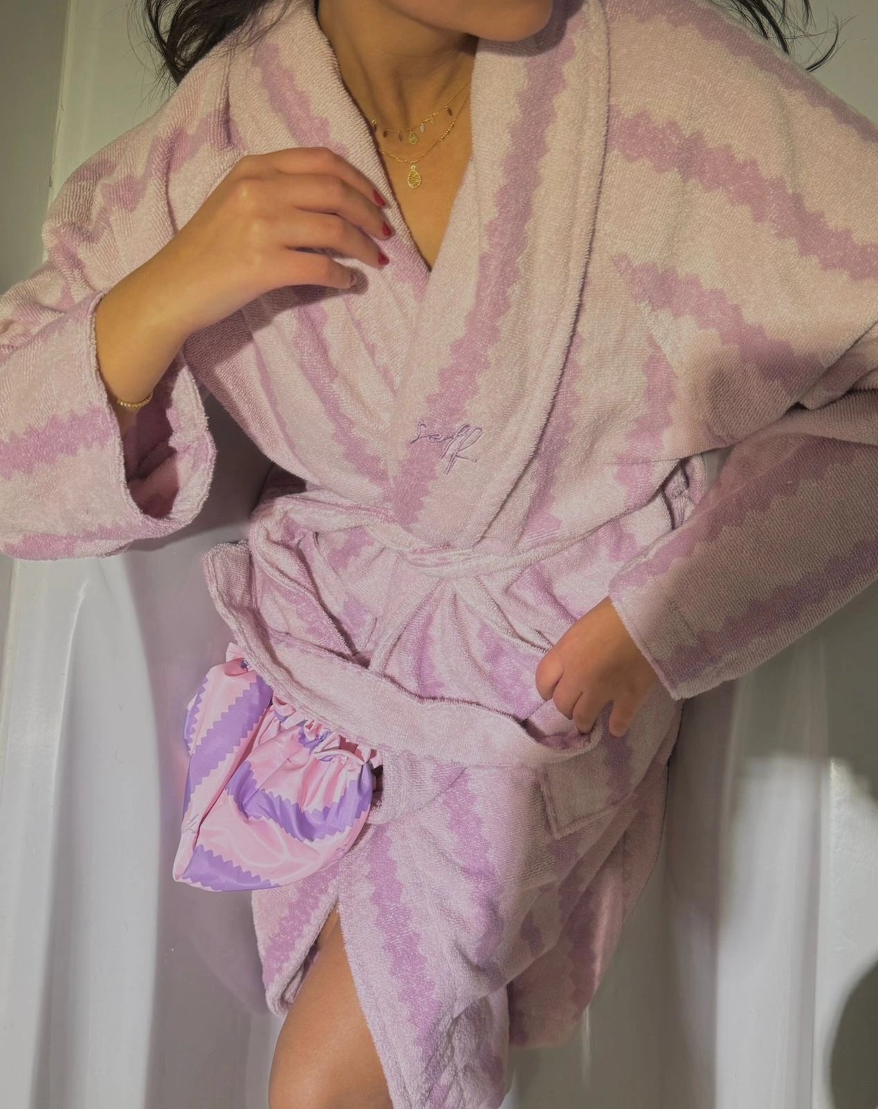because it’s all about the setting you’re in. this kit — a bathrobe and shower cap — anchors the celebration where self belongs: in routines, in rituals, in the everyday moments that make home feel like yours. it’s the reminder that self belongs wherever you are.